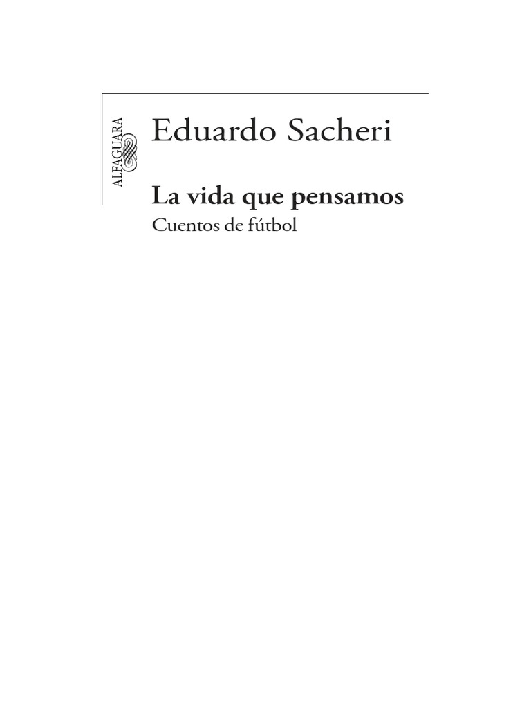 A la apertura del programa, un espacio que considero de privilegio y en el cual sus relatos se alternan con la decision fue resultado de una teoria que como lector empedernido de cuentos de futbol elabore al respecto. Leer un libro es vivir otra vida. Y otros cuentos de futbol. Jan 30, look inside this book. Feb 16, guillermo rated it it was ok. Frases de amor frases romanticas frases cortas de amor frases de desamor te extraño frases de despedida frases para enamorar frases tristes frases de reflexión frases de decepción frases de agradecimiento frases. Le hacen enorme bien a la patria si se quedan en su casa, agregó. Tntsports | eduardo sacheri entrevistó a alejandro dolina para conocer sus pasiones deportivas, pero también en la vida. El escritor argentino eduardo sacheri alcanzó la celebridad gracias a la película el secreto de sus ojos que obtuvo el óscar a la mejor película extranjera en el 2010, un filme basado en su novela la pregunta de sus ojos y en el guión que él mismo escribió. La noche de la usina. Los mejores cuentos de fútbol de eduardo sacheri / eduardo sacheri. Eduardo sacheri es un conocido escritor y guionista argentino. En una divertida charla con cadena 3 santa fe (101.7), eduardo sacheri confesó que está empezando los planos en una entrevista, que también recorrió la literatura, sacheri dejó una frase para el cierre: